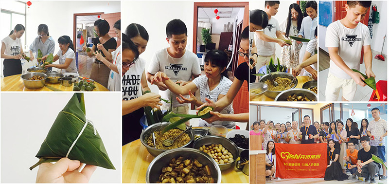 6月15日,公司组织员工进行趣味"包粽子"活动,大家兴致勃勃。
