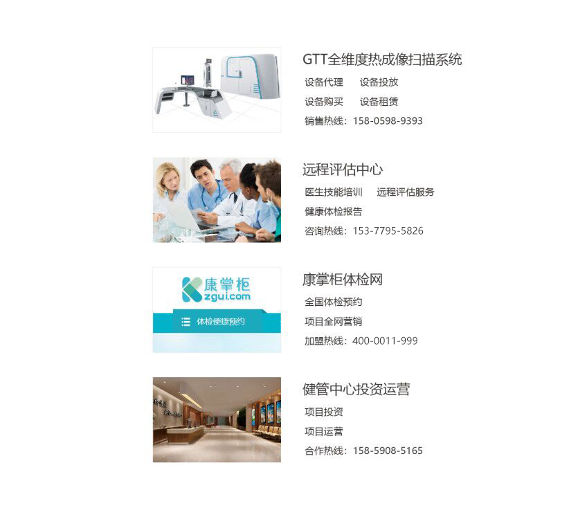 欢迎合作 GTT全维度热成像扫描系统 设备购买 设备代理 设备投放 设备租赁 合作热线:158-0598-9393 远程评估中心 医生技能培···